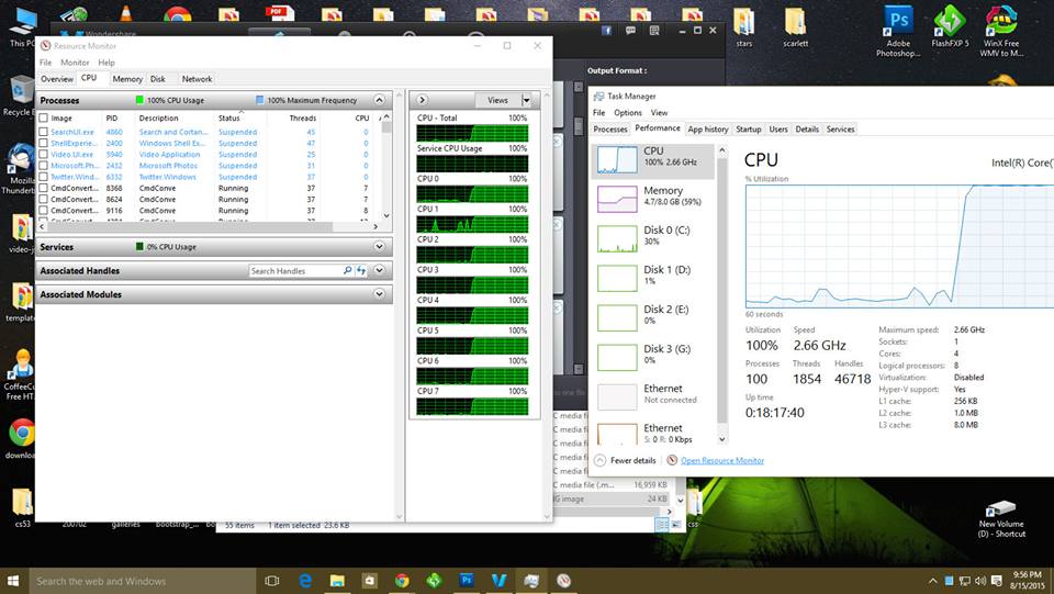 I converted and watermarked a ton of .MPGs over to .MP4 the other night. I'm not sure it's a good idea to queue them for conversion all at the same time. It really heats this up my 8-core processor. At least Pandora kept playing during the whole process. http://greenguysboard.com/board/atta...1&d=1439824465 |