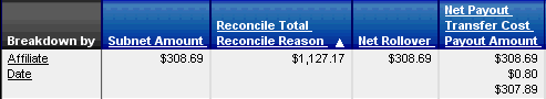 Field List (Check Amounts Results Report) Subnet Amount - The amount you are to receive from Webmaster Affiliates for all of your affiliate accounts. Reconcile Amount - The amount you did not receive from previous billing periods. The amount is held by CCBill. Reason - The reason for the reconciliation. Net Rollover - The total amount after the reconcile amount is deducted. Net Payout - The total amount before the cost for the check transfer is deducted. Transfer Cost - The cost for mailing, shipping, or wire transfer. Payout Amount - The total amount printed on your check. http://affiliatehelp.ccbill.com/inde...mounts_aff.htm |