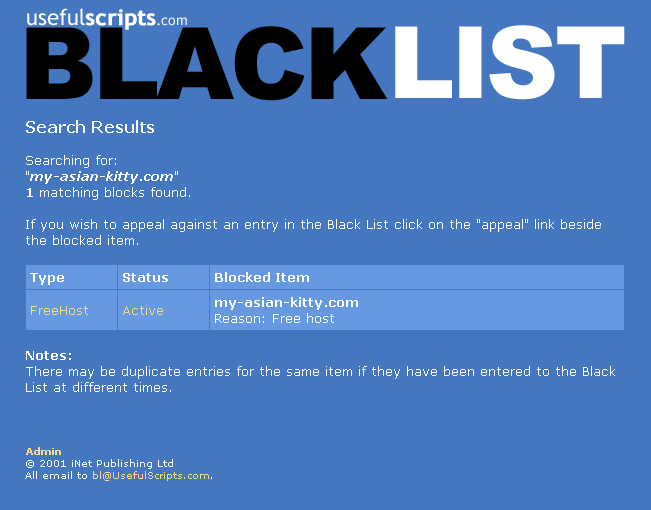 Sure there is. My first look at the site, but it seems pretty straight forward. On this page http://bl.usefulscripts.com/blocked/ click on the " Appeals Procedure" link AFTER..