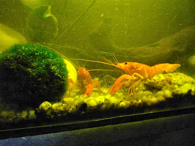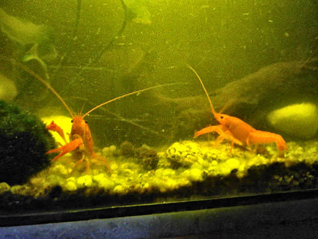 So here are the pics I promised. The camera and photo quality suck but the crayfish are damn funny.