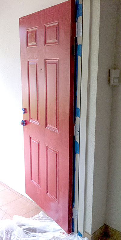 Got up as soon as the sun came up to start painting our front door. Got it all painted but it looks like it is going to need at least two coats. Oddly the woman across the street just painted hers almost the exact same color.