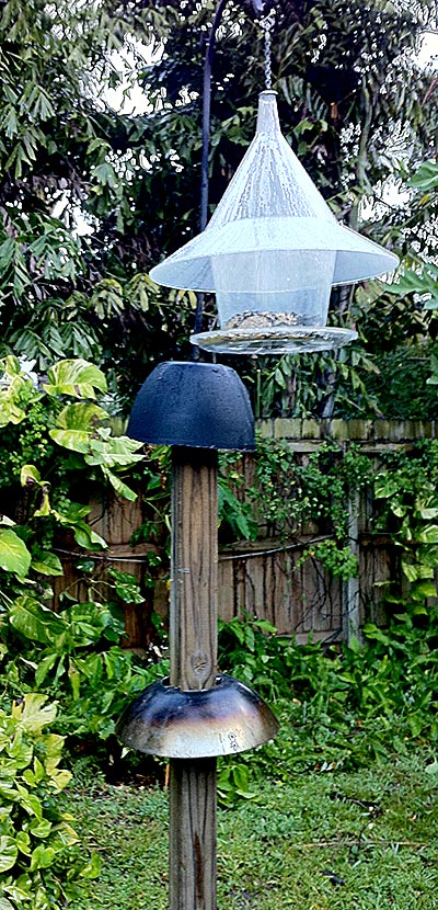 When the electric company came out last week to trim back the trees and put the power lines back up I tried tied to get them to trim more but naturally they didn't so now they are going to have to come out again. Since I was already up... Christy gave me a really nice bird feeder for my birthday last month and the birds have been loving it. The problem is the squirrels have been getting into it. I made a squirrel guard out of an old bucked but the squirrels chewed through it. Saw some squirrel guards on the internet but they were almost $60 so today I took an old wok that we weren't using and cut a hole in the bottom of it, removed its handles and hung it upside down on the post holding the feeder. Don't think the squirrels will eat through a steel wok. Going to do some yard work and then go to the gym and that is about as far ahead as I can plan so far today. ![]() |