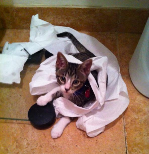 ![]() On a lighter note our new kitty has discovered toilet paper. Doing a little bit of work today along with cleaning house and getting ready for tomorrow's big kayaking day. |