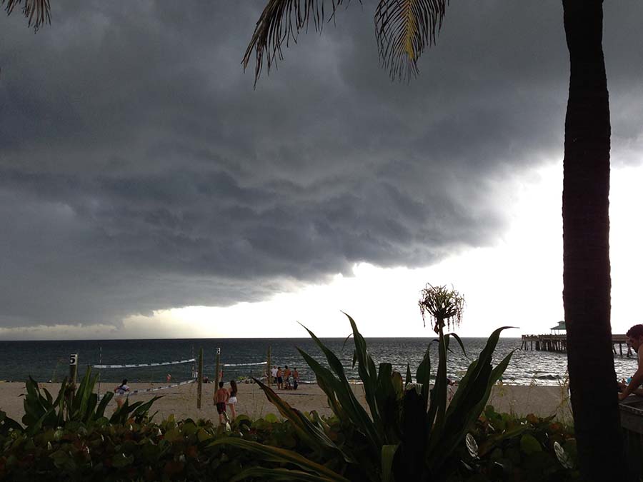 Go up before sunrise yesterday. Checked the beach cam as soon as the sun came up. Saw that it was flat so went out of our friend's boat for a day of snorkeling the reefs. As soon as we got out of the inlet the ocean turned rough and nasty storms moved in. So instead we spent a few hours relaxing at the Haulover Sandbar and then took the boat back out into the ocean and hopped waves with the throttle wide open on our way back to the Port Everglades inlet.