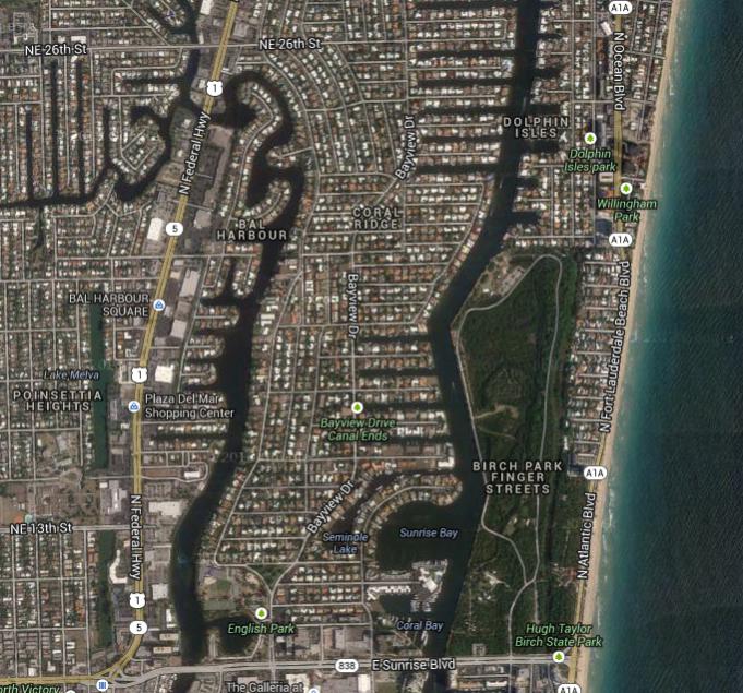 I live about a half mile inland just west of the Intercoastal Waterway in the part of town known as Coral Ridge.
