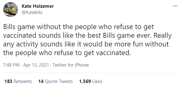 ![]() Just looked to see if my beloved Sabres lost last night (they did) and noticed that there's a 2PM game today between Ramster's new team Arizona & Minnesota ![]() My county announced that anyone attending Bills or Sabres games will have to have the Excelsior Pass which proves you got your COVID vaccine & predictably, morons are losing their shit ![]() Just work on the agenda for me today. |