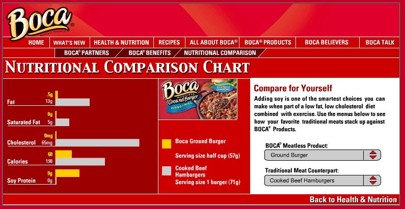 http://www.bocaburger.com/recipe75.html I've served this and no one knew that it was meatless. In fact people had thought that I had started eating meat since I was serving this. Best part is look at this compared to using meat. http://www.bocaburger.com/main.aspx?m=boca_nutrition |