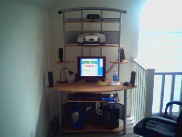 goddamn you all have ahuge desk...i have an closet(or cubboard, did i say that right?) but then i am next to an other closet and diner tabe so i use all the space and i am realy realy not gonna post my pic of that........i am very very messy at my working spot, but then my puter is in an closet so i close the doors and you wont see anything..exept what i have on top of the closet then