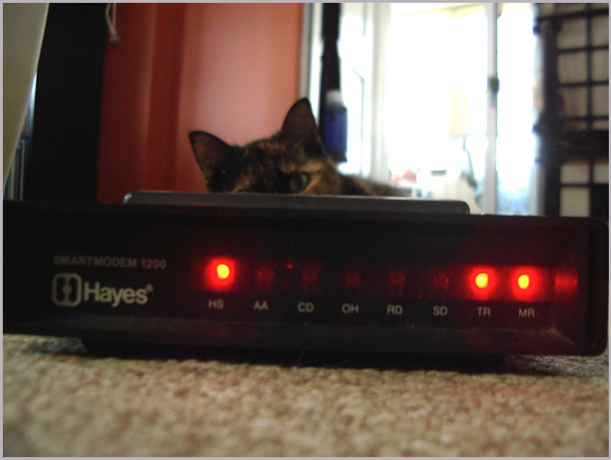 I know I have a 300 'baud' modem around somewhere but I haven't seen it in awhile. But I did know where this one was, from my collection of vintage computer gear, the Hayes Smartmodem 1200, which could automatically switch from 300 to 1200 speed if the connection supported it.