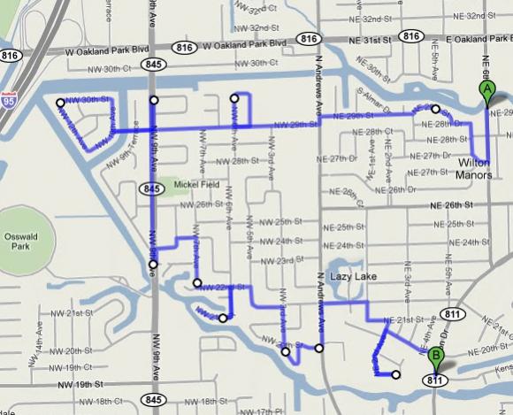 We did about 10 miles kayaking according to Google maps, which only lets you figure street routes not water routes, in 90+ F degree heat today. We went half way around the island of Wilton Manors and then turned around and went back.