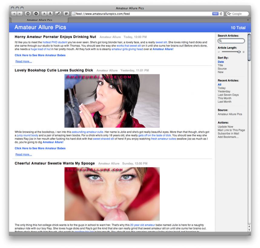 Mine doesn't seem to be working and I can't seem to get it fixed: http://www.amateurallurepics.com/feed It's blank. |