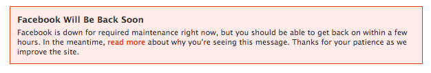 Was working on an android app last night when Facebook pushed a change and broke logins, like buttons, comments on remote sites, etc for roughly two hours. At first, I thought my code was wrong and I hadn't understood things, but, after opening the auth process in Chrome, I saw the error.