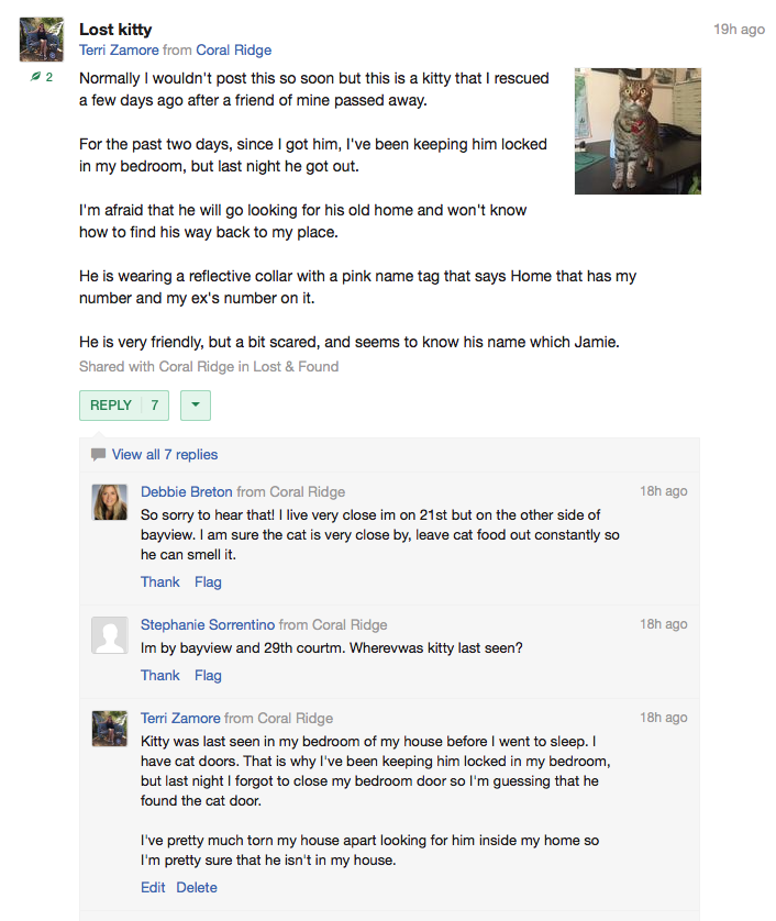 ![]() Cleo, too bad. Hopefully the kitty finds his way back. Maybe check your friend's house, could be there trying/waiting to get in. |