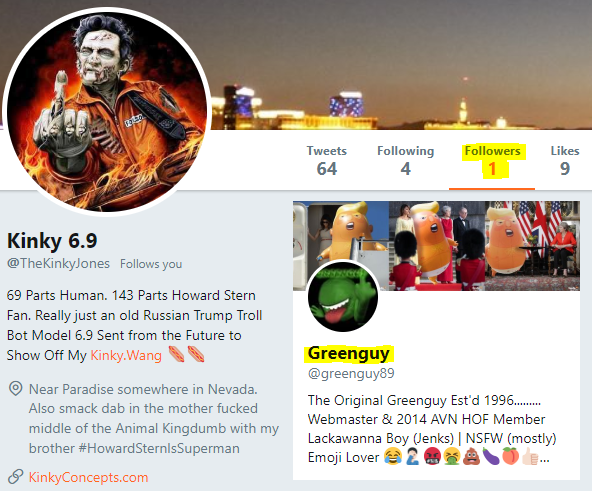 Speaking of distractions Kinky found me on Twitter. I was gonna try to steal some of his followers, but...