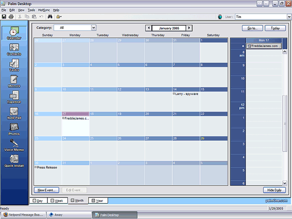 Even if you do not own a PalmPilot™, this is one piece of freeware that you can not afford to be without ... makes organizing things a fucking breeze !!