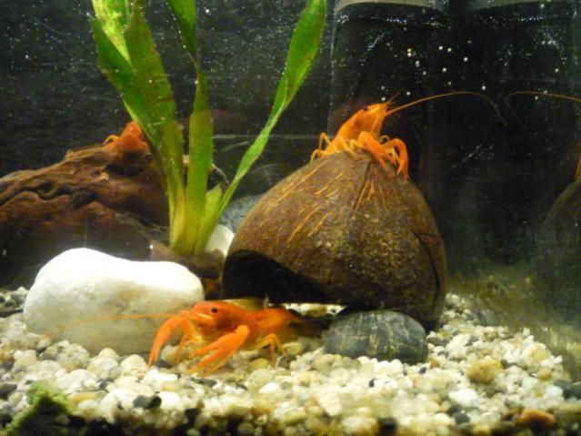 So here are the pics I promised. The camera and photo quality suck but the crayfish are damn funny.