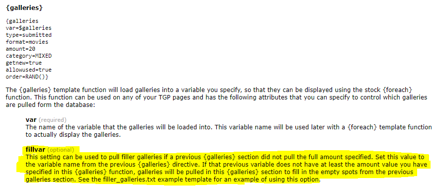 documentation ![]() which is where I found this:So THAT'S what I need To save everyone that's following along at home from having to go find that filler_galleries.txt example template to see what it does, I've included it below ![]() Code: