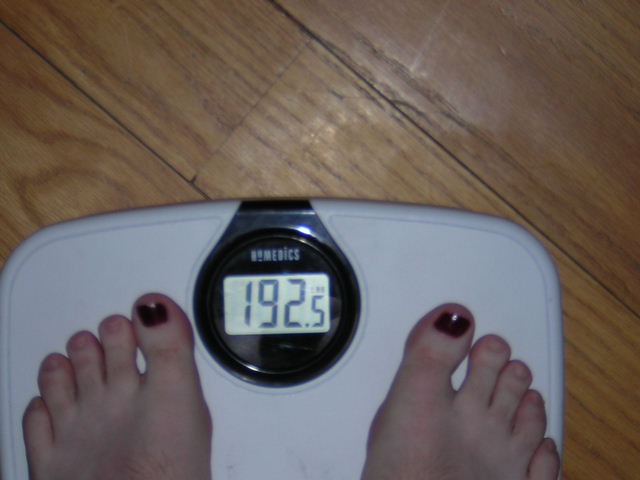 Well,, this morning pic is up (and I added socks to be nice) and I am seeing 192 (and it flickered back and forth to 191). http://www.rawalex.com/weight/feb24.jpg