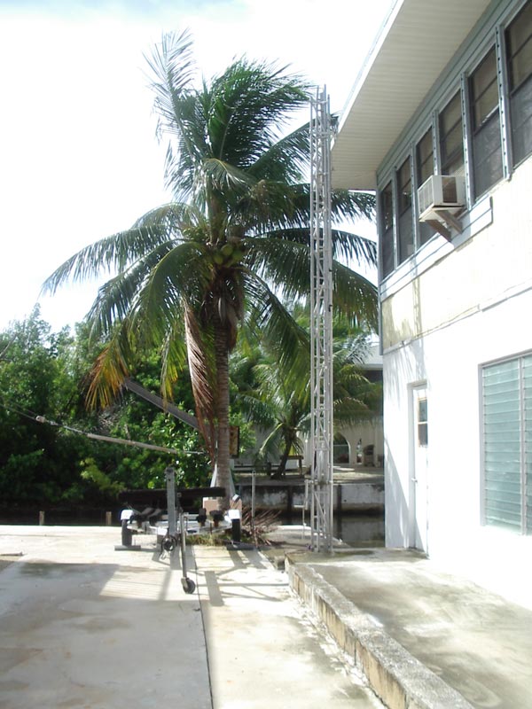 I don't have the ham radio to go with it, but this house like many down here was built when that was a more popular (and actually necessary) way to communicate. I mention that because, like many of my neighbors, I have a large triangular steel antenna next to my house. It reaches to the roof (one of the easy ways to climb up there) when not in use, and has a crank which extends the center section up to be about four stories tall. No one I know has a ham radio here anymore but a lot of us have the antennas.