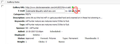 You've got a list of galleries now. Whenever You try to change anything, in case of the picture I've added e-mail address, You'll always get 4 basic options. The third one is mass change and it refers to Your current change, in my case e-mail address. So, when I hit it I will change all e-mail addresses at the galleries that came out from my search criteria (Sponsor: ND-milfhunter, Format: pictures).