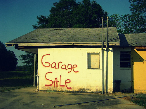 We have a deep 2 car garage & it's basically still packed with shit from the move, but it is kinda organized as the far 1/2 is basically all shit we're selling. The town we live in promotes a Town Yard Sale* this weekend & a woman around the corner collects $5 for anyone in the neighborhood so she can take out some ads & hang signs. I can't wait to interact & haggle with people