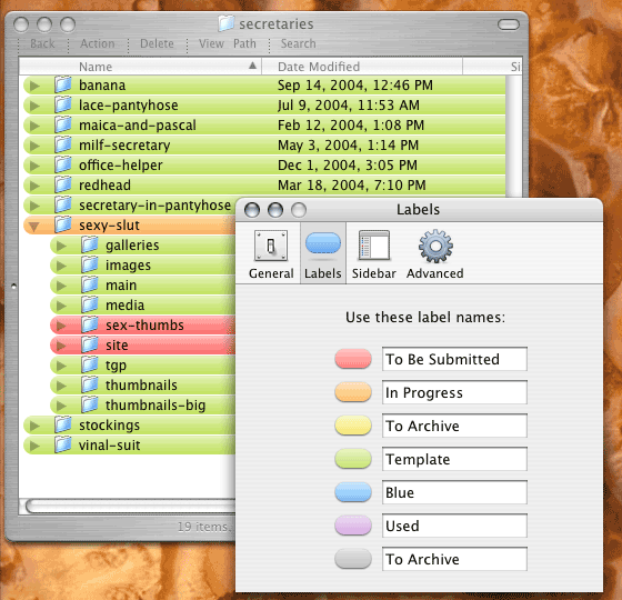 Here is a screen grab of one of my job folders with the Label prefs open.