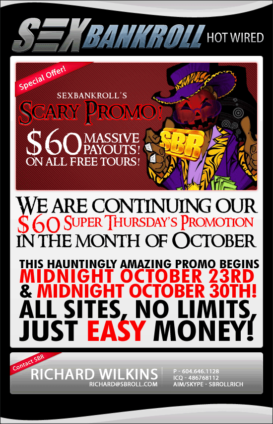 Start sending your traffic to these top Sexbankroll sites ASAP! We will pay you $60 Bucks for every free trial you send, all sites, no limits, just easy