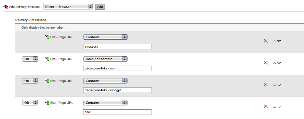 After getting the hang of OpenX, I am trying to use the delivery limitations to serve ads at the top of my category pages relative to the category.