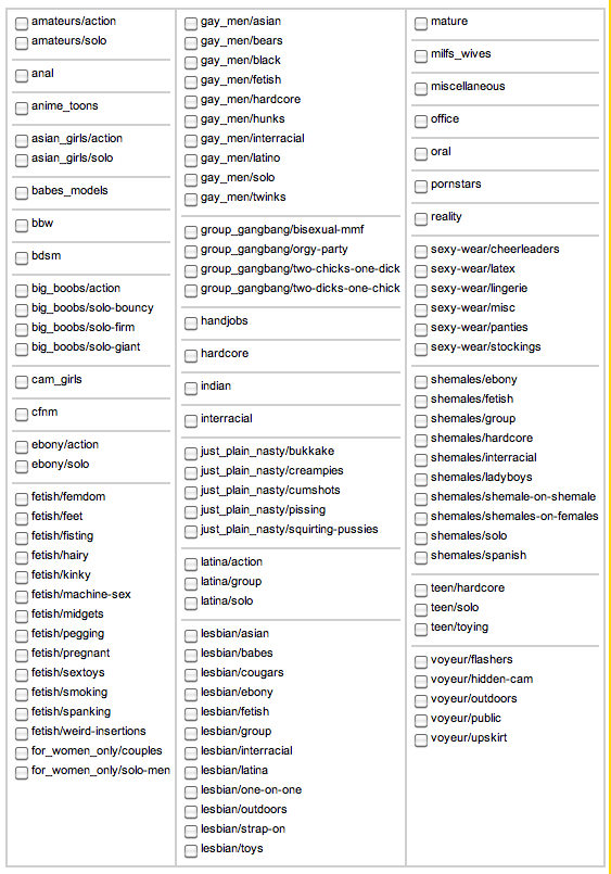 First someone let me know that my For Woman categories was missing on my submit form and then today I went to submit some of my own stuff and realized that all my Gay categories were missing.