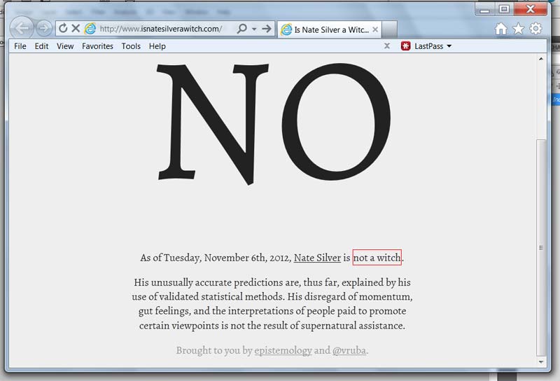 Turns out I still had the window open from the sometime earlier today when I looked at the Is Nate Silver a Witch site...