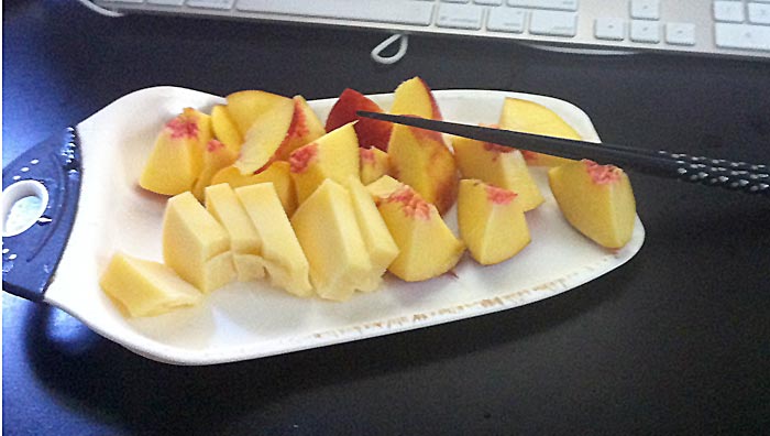 Trying to eat my breakfast whilst fighting my cheese loving cat away.