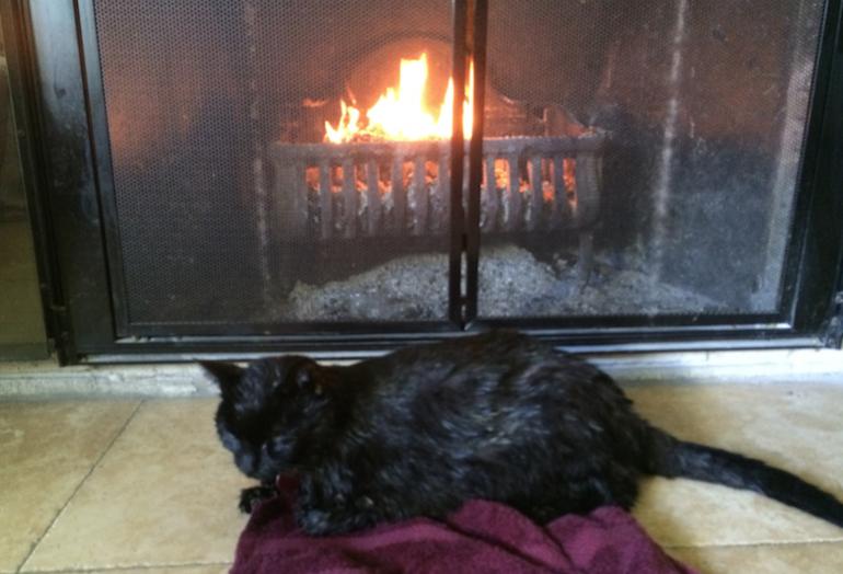 I have a friend who is a first responder and this morning she responded to a call for an oxygen explosion. Turns out it was some guy that tried to smoke a cigarette whilst on oxygen and his head exploded. Then my female cat that got sick and took off a few days ago was found by a neighbor. Took her to the vet right away. (the cat not the neighbor) She has liver issues. $320 later I have a bunch of meds and special food to give her and another free visit tomorrow to the vet for more fluids. Vet is giving her a 30% chance of making it. Was told to give her a bath so I did. Built a fire for her since she loves relaxing next to it. |
