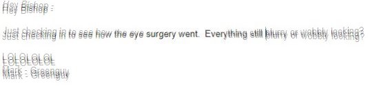 ![]() It's 6°F/-15°Canadian It also snowed,so I'll be heading out into the bitterness as soon as The Bitch gets up to take care of the driveway ![]() I get to go see my chico today, as she was on vacation in Mexico for the last week. That's gotta be an 80-90° drop in temp for her! After that I get to run the ASSIL around. I'm told he may be able to apply for his license again in about a month. My old friend Bishop from AEBN recently had eye surgery, so I sent him this email yesterday: ![]() |