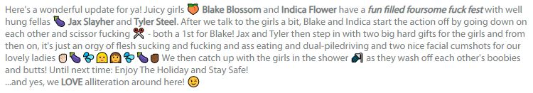 That feeling when your silly use of alliteration in a scene title - Fun Filled Foursome Fuck Fest - gets picked up by a major industry news source