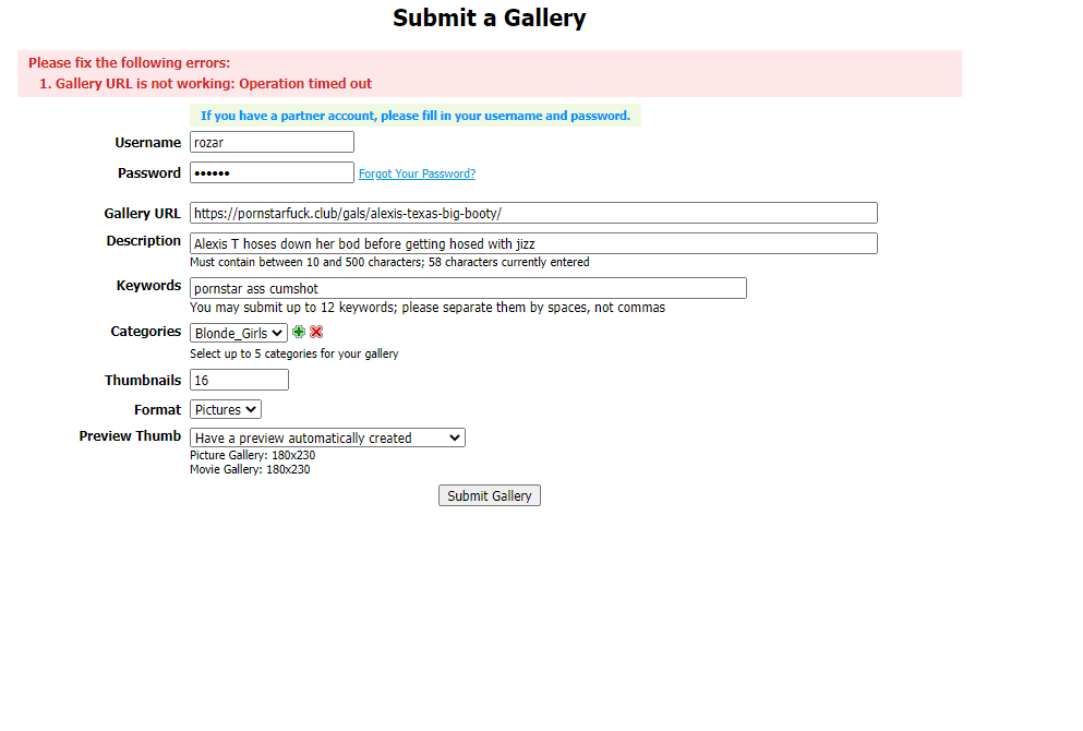 Yeah, I had an issue with that exact same gallery. I tried and tried to get it to go with no luck. We both think it was something with the images on that one. I finally got it to work by manually entering it and pulling the thumb from my hard drive. All of the other galleries have been just fine, including others from the .club domain.