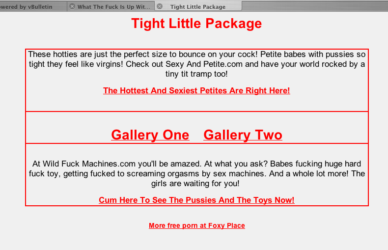 "Do You Have One Dollar? That Will Get You A 3 Day Trial At Sexy And Petite!" Perfect, not blind, could be part of another paragraph or all by itself and it would be fine. On the main page you you used blind tax and then said it was wasn't blind because it is part of the other paragraph. So if it is part of that paragraph then it should be with that paragraph. Either that or make it not blind like you did on the first page. In all fairness your site is not nearly as bad as the stuff that I've been seeing this week. |