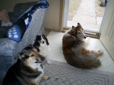 I've got the kids today since my mom and dad who usually watch them on Mondays and Tuesdays went to Florida for their 27th anniversiary. Got an email from my mom and dad this morning wanting to know if I could go over to their house and sign my dad offline, haha. Fucking AOL, he left himself online and now cant get on down in Florida. I would explain to him how he can check his email on aol.com still, but with my mom and dad it will just be easier going over there and signing him off than explaining that to them. While they are in Florida I am watching their dogs, and one of them is an old huge ass 100 pound Collie named Buddy, he was my dog back when I still lived at home in my high school days, he's on lots of medication for his various old dog ailments and these pills he takes makes him piss and shit like crazy, so I am careful to make sure I get up early to let him out so he dont piss and shit all over my floors. Well 20 minutes after I let them out this morning I find a nice big pile of shit in the hallway. Not even thinking I start yelling at him telling him he's bad, and make the dogs go outside again. Well Buddy acts just fine, but their other dog which is an even bigger 3 year old 3/4 German Shepherd 1/4 Rotwieler mut named Ava runs from me (like she is guilty) and I have to go run her down and drag her back into the house. So I am thinking now that I might have been yelling at the wrong dog, kinda funny how dogs always tell on themselves. With this whole dog situation the funniest thing is that my little Sheltie dog Lady is the dominate one out of the three. She likes Buddy and treats him somewhat of an equal, but Ava acts scared to death of Lady and submits to her all the time. When I feed them and if Eva is eating Lady goes up to her growling and Ava steps back and lays on her back spread eagle and lets Lady eat. Nothing like seeing a 100+ pound German Shepherd/Rotweiler submit to a 25 pound Sheltie. About a month ago my mom and dad watch my dog and they said they had to seperate them because when Ava would submit to Lady over there they said Ava would roll on her back spread Eagle and dribble piss on the floor.