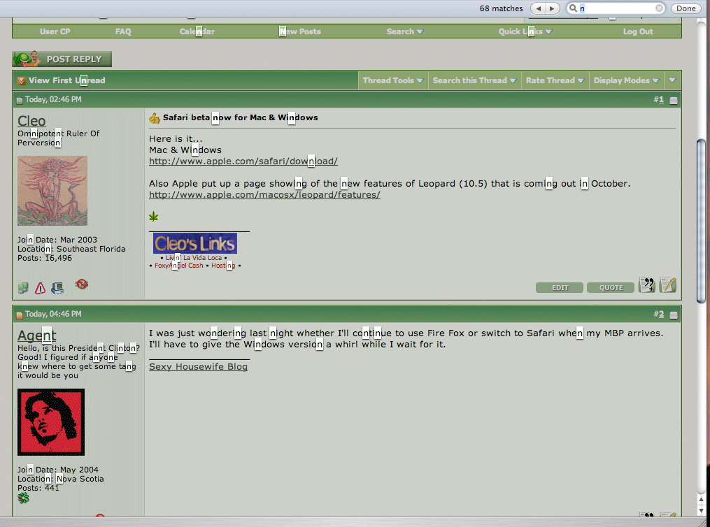 I was just wondering last night whether I'll continue to use Fire Fox or switch to Safari when my MBP arrives. I'll have to give the Windows version a whirl while I wait for it.