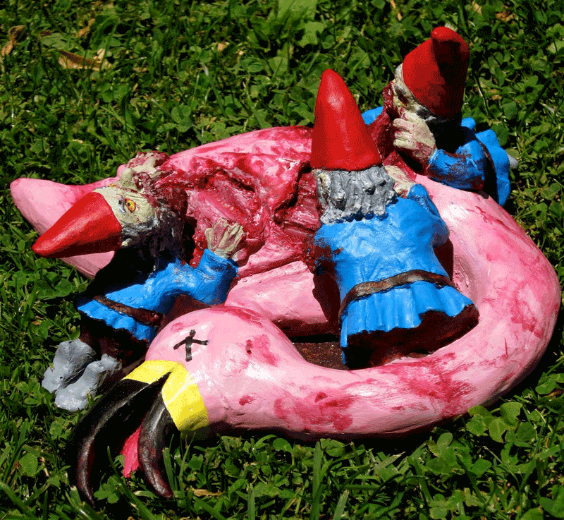If you're also tired of seeing those pink flamingo garden ornaments there's this nice combination...
