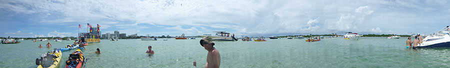 Seeing all of Greenguy's panoramic pics from his iPhone I decided to play around with the panoramic setting on my waterproof camera and took this while relaxing on the submersed sand bar. I really didn't know how to use this setting until I got back home and read the manual so most of them came out really bad but this one was the best of them. Click for full size image. So far our plans for today include more kayaking. |kayak| |