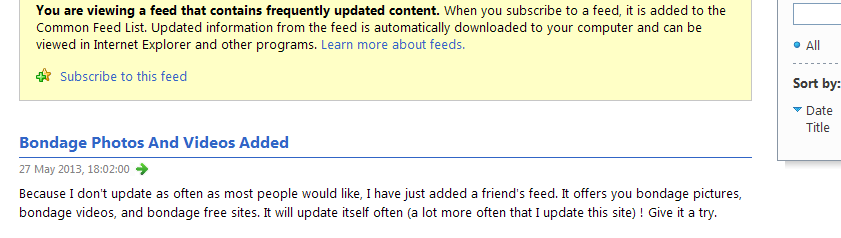 Some of my blogs are written by other people, and looking at one run by someone who has not posted in a long time I loaded the RSS feed via IE. The screenshot below was taken today (29 November 3014). Look at the date of the last post and what IE says about this feed in the first line.