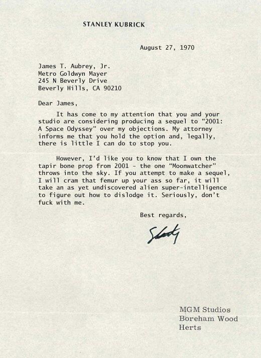 Ever wondered what Kubrick thought about the idea of a sequel? This letter from him, nearly 45 years ago, sums up his opinion concisely. ![]() |