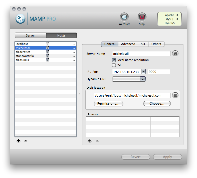 WAMP (Windows Apache MySQL PHP) I'm running MAMP (Mac Apache MySQL PHP). The free version allows for one web server folder. A few days ago I got the Pro version that allows as many folders as you want to be root folders along with a few other things. |