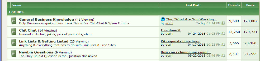Just went to the main forum index as I wanted to put a link to it in the webmasters' area of ClitPass. This is what I saw: