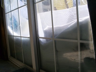 Here's a pic of my back door and patio, thats all snow, haha.