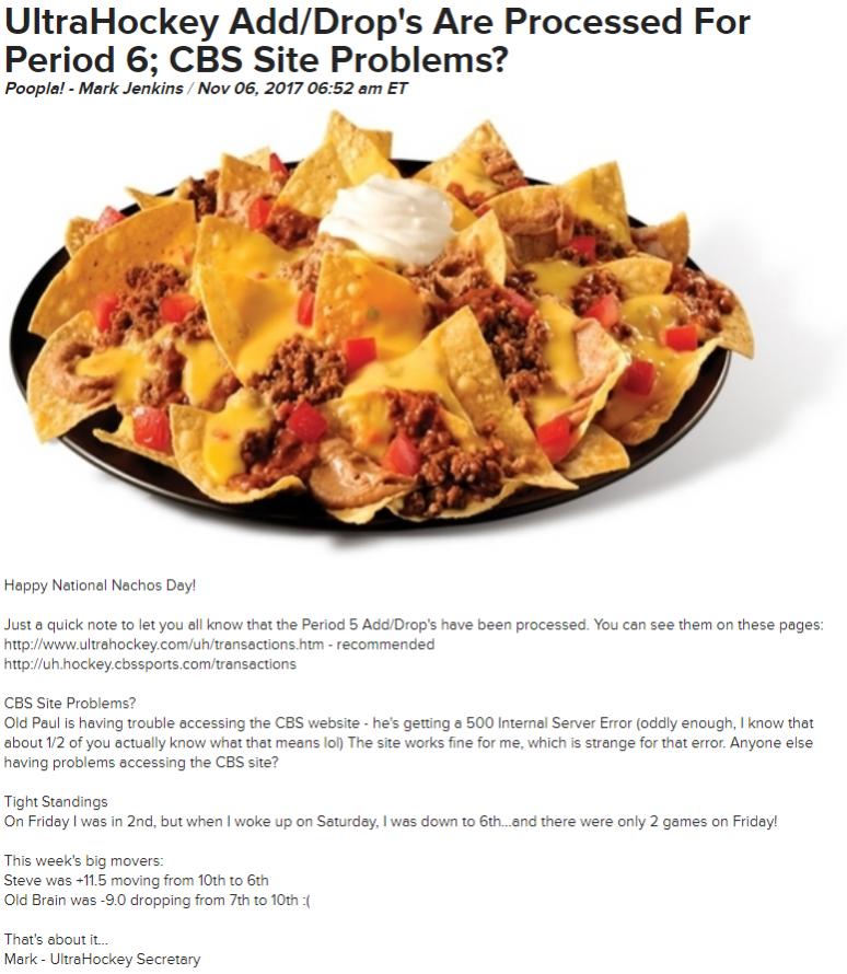 I send out a little newsletter to my fantasy hockey league every Monday & I start it out by wishing everyone a "Happy National Whatever Day!" & attaching a pic based on what Pagan's posted