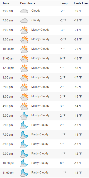 Another day where the high is forecasted to be 3°F