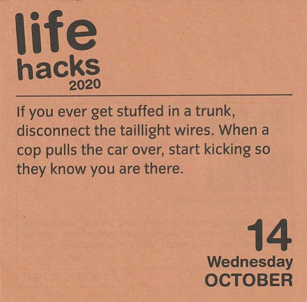 ![]() FUCKING BILLS 🤬 (I blame Yell for going to his buddy's house to watch the game)Working this morning as I have a shitload of thumbs to make. I also have an unusual amount of running around to do this afternoon, one stop being to get a new keyboard/mouse combo as my mouse isn't scrolling right & the "click" noise it makes is funky. I'll leave you with these 2 gems: 1 - Life Hacks got pretty fucking dark today... |