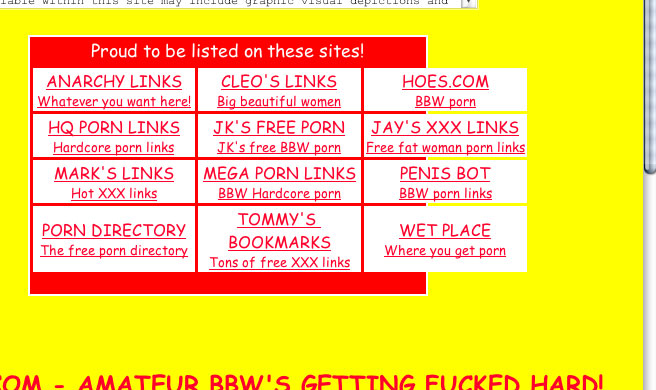 Just received this rejection mail from you "Your site url: http://www.free-daily-porn-pics.com/hotamateurbbw There is a problem with your code and the page does not display properly" I don't know WTF you mean, please explain :-) The page displays fine for me, I don't know what's up, with the code??? Thanks :-) |