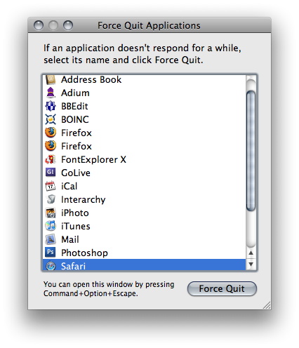Hold down "Command Option Escape" to bring up the task manager.